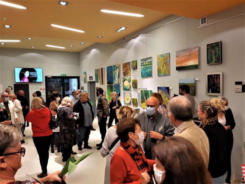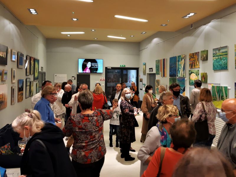 Zamieszczam fotorelację z wernisażu wystawy poplenerowej „Międzynarodowy plener malarski w Dłużewie 22-29.08.21”, którą gości u siebie Galeria Wejście MOK